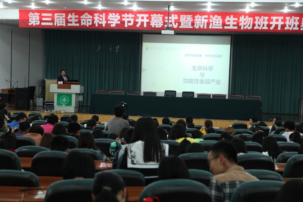會議中,新漁生物董事長為川農(nóng)大生命科學學院學生作專題報告《生命科學與功能性食品產(chǎn)業(yè)》