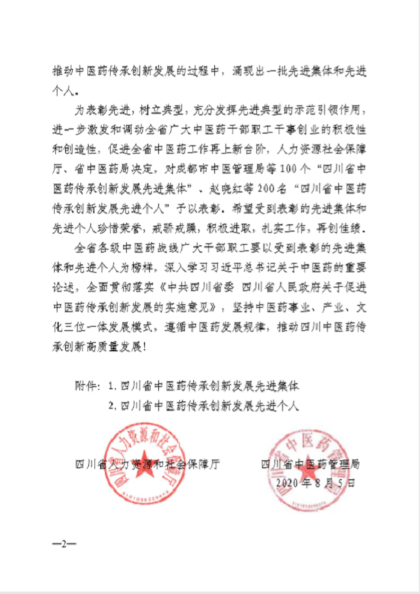 08月25 董事長(zhǎng)馬建中先生獲評(píng) “四川省中醫(yī)藥傳承創(chuàng)新發(fā)展先進(jìn)個(gè)人”