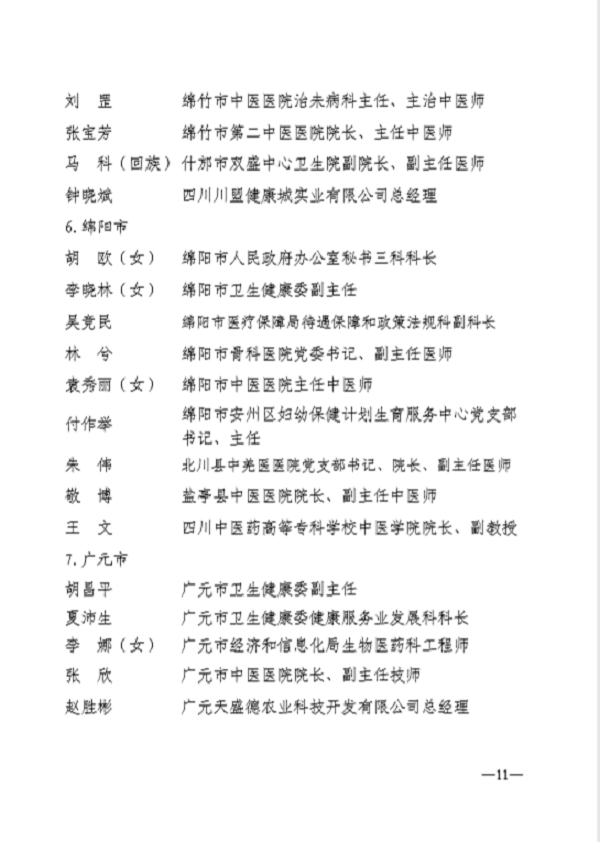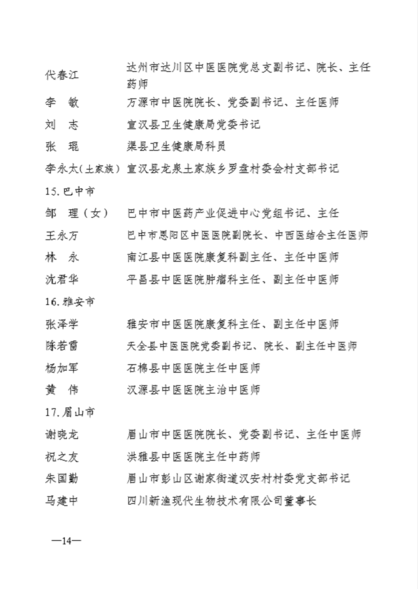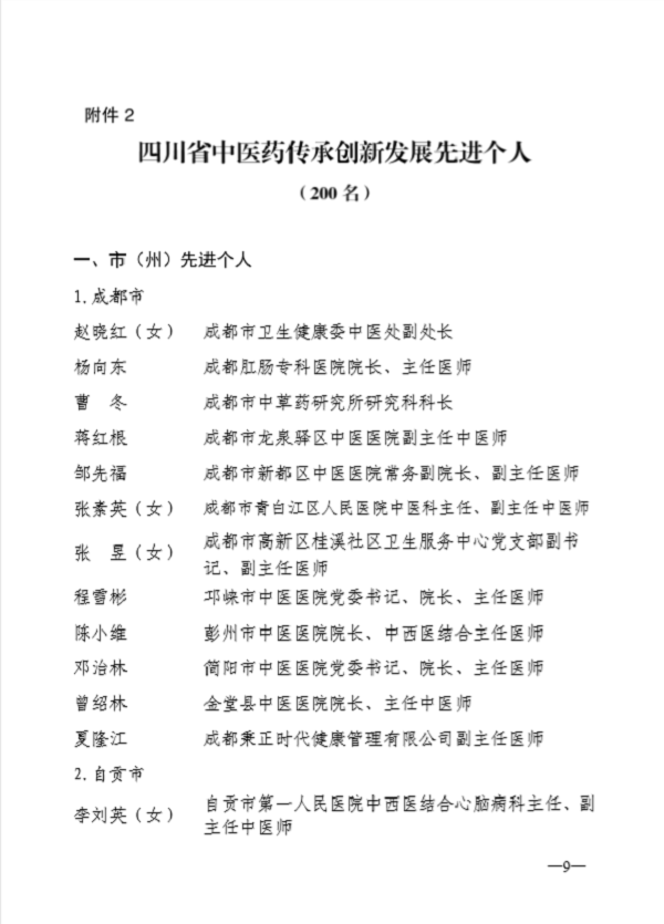 四川省中醫(yī)藥傳承創(chuàng)新發(fā)展先進(jìn)個(gè)人部分名單: