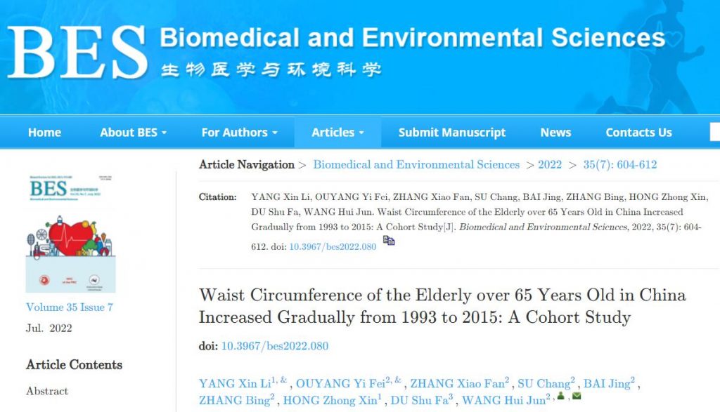 近期,首都醫(yī)科大學(xué)附屬北京友誼醫(yī)院、中國(guó)疾病預(yù)防控制中心營(yíng)養(yǎng)與健康研究所、美國(guó)北卡羅來納大學(xué)教堂山分校營(yíng)養(yǎng)系和卡羅萊納人口中心聯(lián)合完成的《中國(guó)健康和營(yíng)養(yǎng)調(diào)查》顯示,從1993年到2015年,我國(guó)65歲以上老人的平均腰圍從78厘米增加到86厘米,增長(zhǎng)了8厘米。該研究發(fā)表在《生物醫(yī)學(xué)環(huán)境科學(xué)》雜志上。
