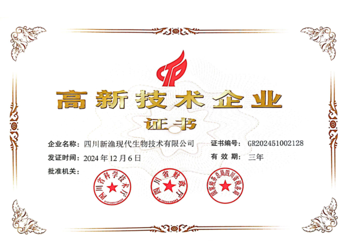 04月10 新漁生物順利通過政府高新技術(shù)企業(yè)認證授牌